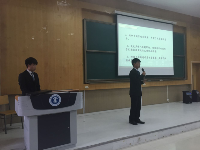 15级5班、2班分别获得了评比的一等奖和二等奖。钱书记等人对获奖班级进行颁奖,王瑞军老师做总结点评,他结合自身经验强调了做公益重在坚持不懈。到此,评优大会圆满结束。