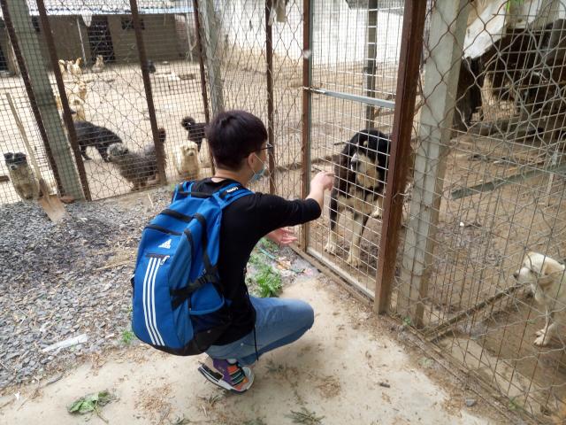 17日下午一点,全体志愿者在北门集合完毕,随后乘车前往徐州小动物救助中心。刚到达救助中心,志愿者们就感受到了小动物的“热情,”周围犬吠声不断。救助中心工作人员告诉志愿者们,收留的小动物以流浪狗为主,其中有很多小狗是被丢弃的,了解到这样的情况,同学们纷纷表示同情。在参观完基础设施后,全体志愿者在大门口集合,并在分队负责人的组织下分为男女两组,男生组帮忙搬运捐赠而来的物资;女生组则为小动物们准备粮食。搬运物资时志愿者们发现救助中心的设施非常简陋,建设也十分不完善,并了解到送来的物资也不多,甚至还不能满足所有小动物的生活所需。准备的粮食以馒头为主,为了让小动物们更好地食用和消化,女生将运来的大馒头撕成小馒头,并蘸上水喂给嗷嗷待哺的小狗小猫们。一些完成志愿工作的同学主动帮正在种植树苗的奶奶除草,或清理四处的垃圾。