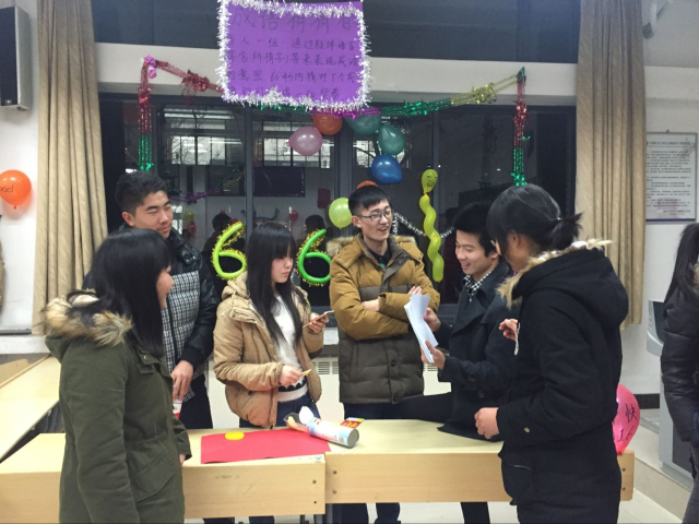 晚上7点,游艺宫正式开始。同学们用五彩的气球,彩带将教室装饰出新年的气息。“魔幻之旅”游艺宫中的“水上浮硬币”难倒了很多学生,“扭转乾坤”考验了同学们的记忆力,“花样青春”中的“护送气球”考验了身体协调能力,团委游艺宫中的“筷子投酒瓶”锻炼了同学们的集中力,还有“抛绣球”、“飞环套圈”“弹球入筐”等等有趣的游戏,吸引了许多同学们关注。