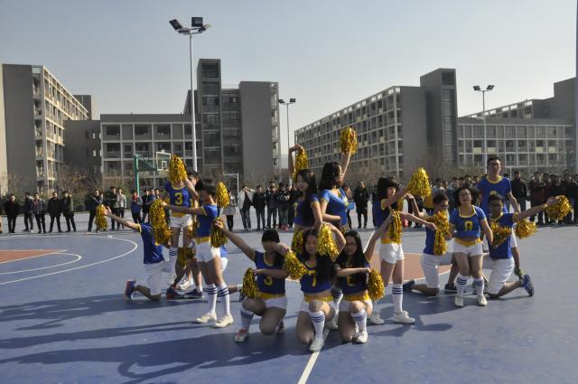新生拉拉队也上场跳起了啦啦操,将比赛现场带入高潮。几分钟后,拉拉队队员们下场,随着裁判一声哨响,冠亚军角逐正式开始。