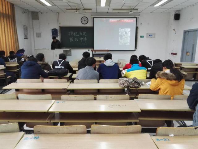 14级四班在博学楼4开展一二九主题班会活动。班主任刘宏参加本次班级会议。