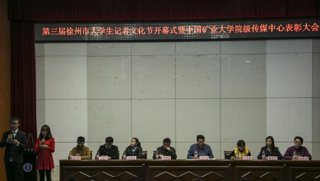 等四所高校联合主办,各校传媒中心承办的徐州市第三届大学生记者文化节在信息与电气工程学院一楼报告厅举行隆重的开幕仪式。新闻宣传科科长刘尊旭、副主任赵红灿、包子漫画指导老师卢进丽以及各高校新闻宣传中心主任参加本次开幕式。