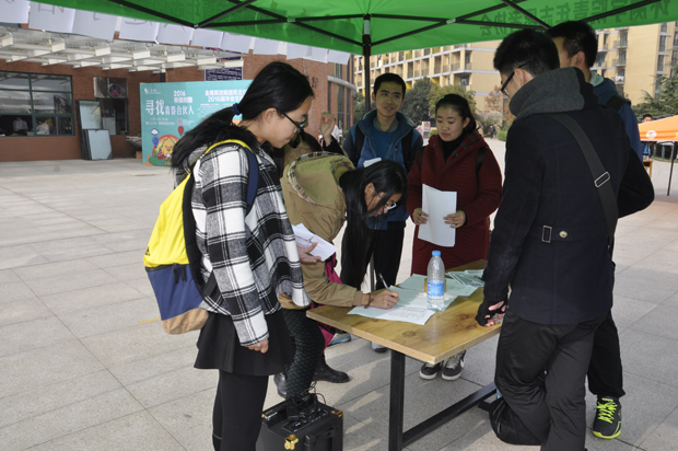青年志愿者协会负责松苑餐厅和梅苑餐厅的宣传活动,宣传的形式以发传单为主。每个成员都尽力做好自己的宣传工作,即使寒风凛冽,也面带微笑地向同学们讲解手语课堂的内容,耐心地为前来咨询的同学们解答疑惑。很多来往的同学们在了解了手语课堂的知识之后,自愿成为一名光荣的志愿者,学习手语知识,为聋哑人服务。而因为某些原因没有报名课堂的同学纷纷表示愿意多了解手语知识,为聋哑人提供一份关爱。