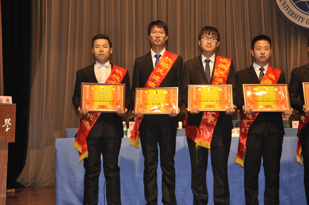 12级学生付艳晴和研究生陆新晓获省三好学生,安全12-3班获省先进班集体的荣誉称号,安全13-5班成为红旗示范班集体,消防14-1班荣获校先进集体称号,14级学生奚修齐获校级优秀学生干部称号,13级学生孙明哲获校级优秀学生荣誉称号。颁奖仪式结束后,部分优秀班级集体及个人发言。随后,校党委副书记曹德欣给予优秀个人、集体高度的赞扬,并总结了过去一年中学校取得的成绩,最后,曹书记向老师和同学们送上了祝福。最后,大会在激昂的校歌声中圆满结束。
