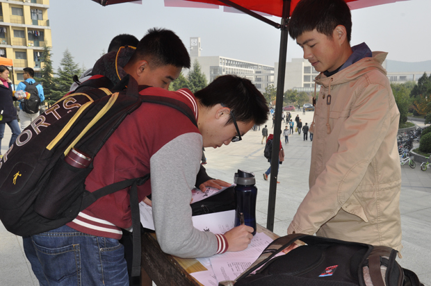 科协在校二食堂门口设立宣传点,进行为期五天的现场报名活动。