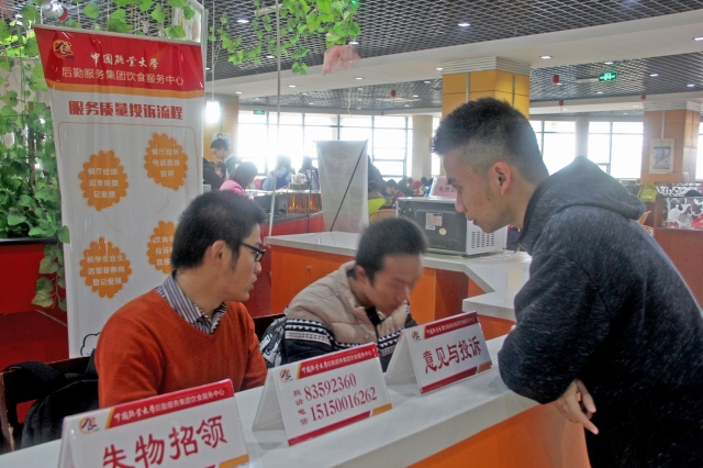 服务分队有近150人,充足的人力为伙委会工作的开展提供了必要保障。与此同时,安全伙委会制定了合理的宣传方案和详尽的工作规划,内部分工明确,具体内容包括:失物招领平台,学生反馈平台,菜价监督公示以及卫生检查。安全伙委会还将开展各项活动,例如“光盘行动”、“走进食堂后厨” 等,让同学们了解食堂后厨工作,促使同学们养成良好的节约意识。值班人员热心帮助同学,对同学的疑问耐心解答,同时将丢失的物品记录下来。一名值班人员讲到:“吃饭是大事,我们会认真工作,为同学们营造一个干净、健康的饮食环境”