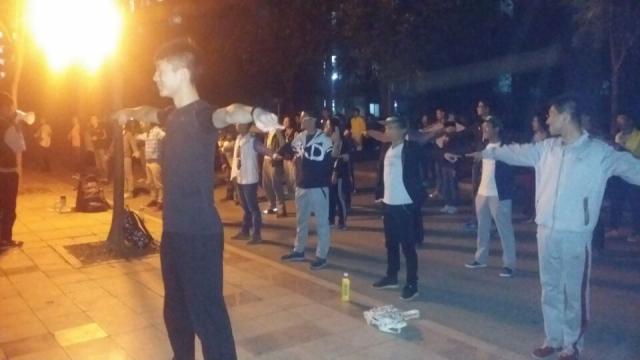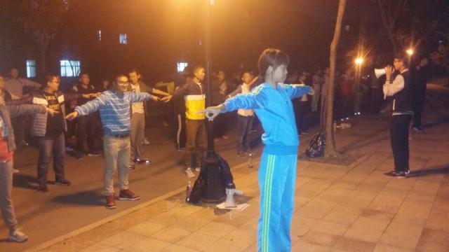 晚上9点15分,同学们先是一个个进行有序签到,随后由体育部统一指挥按体操队形散开,而教导大家学习体操的同学也已就位,排练正式开始。其中一位负责教导的同学手持喇叭讲解动作要领,另两位同学向大家亲身示范,由于第一次学习,同学们感到新奇无比。刚开始时,队伍中的同学们竟嬉笑不止,但在手持喇叭的教员喊了一声“安静”后,同学们便立刻停止嬉笑严肃起来。之后,在教员的带领下,同学们都仔细学习着每一个动作,在经过不断练习后,大家基本都掌握了动作要领,虽然同学们的动作不能完全统一,但他们在认真学习中都尽力做到了最好,而参与排练同学的认真劲儿也受到了教员的赞赏和鼓励。