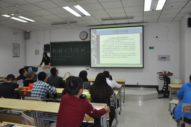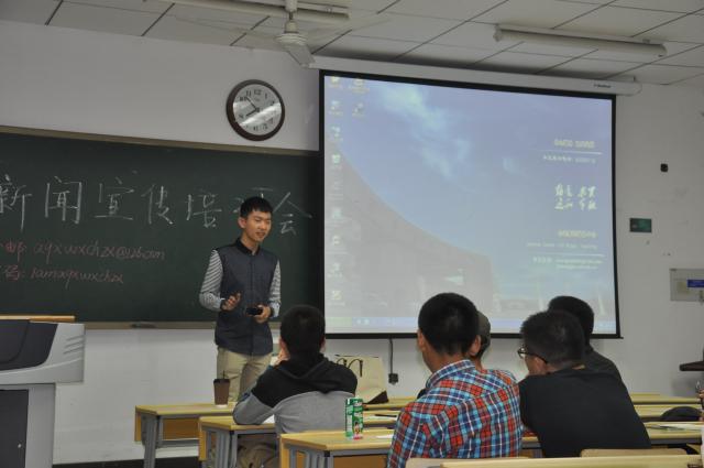 新闻宣传中心成员在新闻写作以及照片采集的水平,10月17日晚,中心部长在博四B302进行了培训工作。