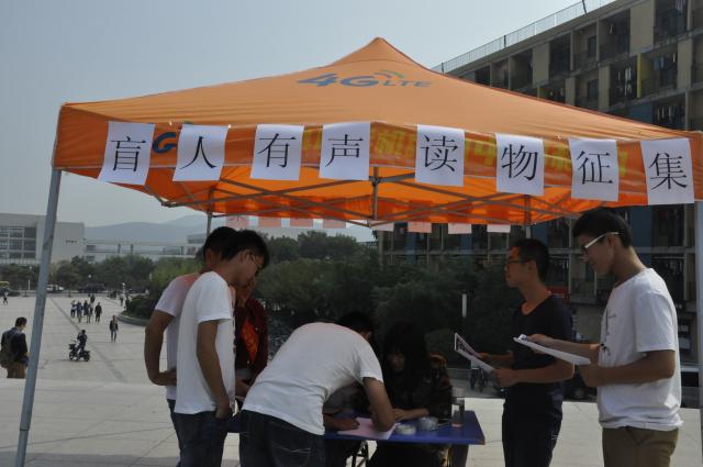 青协部长为同学们介绍本次活动的目的以及意义,10月15日是国际盲人节,目前我国盲人有声读物出版还在起步阶段,远不能满足盲人精神文化的需要,因此举办此次活动是为了让广大学子在心中对盲人群体产生更多的关爱。介绍完毕后,青协的同学们开始向来往的同学分发传单,并且详细介绍着参与盲人有声读物征集活动的方法及意义。经过青协同学的认真介绍,大家反响热烈,纷纷走向报名点咨询并报名参加本次活动。下午两点,全体成员在满满的收获中结束本次活动。