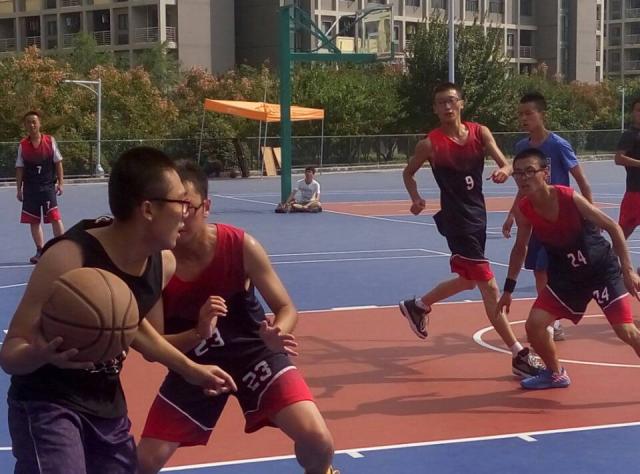 中午12点,距比赛还有30分钟,各班队员就已经在场地内进行热身运动,尽管天气炎热,但是每位队员都在认真地准备比赛。12点30分,比赛正式开始。每位队员都生龙活虎的在场上来回穿梭,运球、盖帽、扣篮每个精彩的瞬间都伴随着同学们的阵阵掌声和欢呼声。
