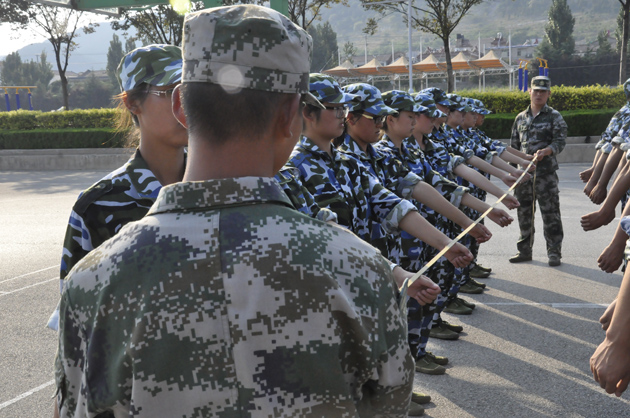 为了在比赛前达到精益求精的效果,教官首先针对同学们在训练中暴露出的问题进行了总结,并提出解决的方法。同时,同学们更是主动积极,要求教官针对有待提高的科目进行强化训练。尽管白天的训练已让他们精疲力竭,但他们的热情丝毫不减。在聒噪灼热的田径场上,他们的身姿显得格外坚挺,他们的口号声格外嘹亮。