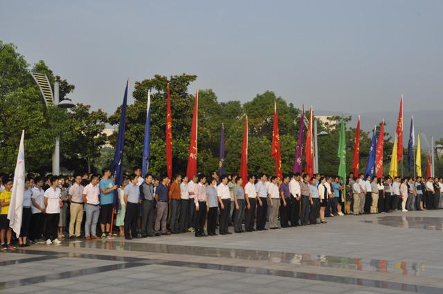9月3日清晨,于东门镜湖广场,“铭记历史•珍爱和平”纪念中国人民抗日战争暨世界反法西斯战争胜利70周年升旗仪式顺利举行,包子漫画