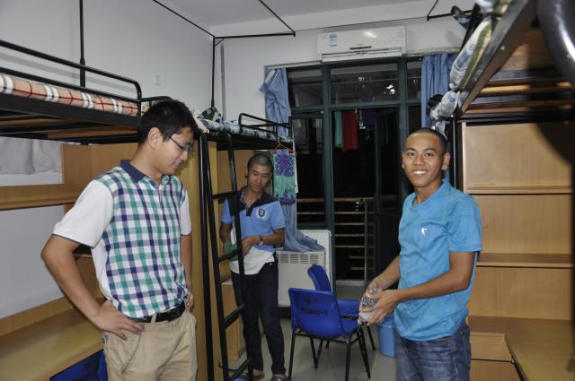 为了提高内务整理的效率,辅导员吴张蔚和何伟民两位老师分别负责女生和男生宿舍。在男生宿舍,何伟民老师向新生详细介绍了内务整理的具体要求,包括宿舍门窗墙壁柜子的清洁、洗漱间的洁净、生活用具等的摆放方式等等。随后何老师就昨天宿舍长会议中所布置的宿舍内务整理任务进行卫生检查,并且针对窗槽、阳台、墙面等卫生死角进行进一步强调。随后何伟民老师将宿舍分成不同的区域,不仅亲力亲为、现场演示,还为新生们提供一些以前内务整理留下的宝贵经验。与此同时因为女生力气不够大,打扫卫生效率不是很高,吴张蔚老师鼓励女生们要学会养成独立自主、肯吃苦能吃苦的好习惯。并提醒女生在保证宿舍内务质量的同时还要提高速度,要不畏艰难,迎难而上,发挥自己的聪明才智将内务整理做到最好,争取在内务评比中为学院争光。