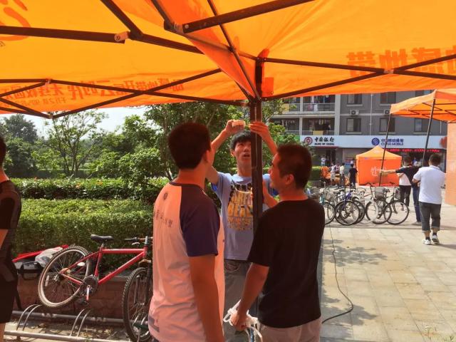 为确保迎新工作的顺利进行,团委学生会所有成员准时来到迎新现场,按照分配好的任务各司其职。在主席们的安排下,同学们有的调试设备,安装仪器,有的搭帐篷,抬桌椅,有的打印条幅,张贴标语,还有的装饰气球,美化站点,每个成员都恪尽职守,以最积极的态度将工作高效率化。在张贴宣传海报的时候,由于海报和展板的尺寸不够匹配,负责张贴的同学遇到了阻碍,但他们很快找到了合适方法,使得问题顺利解决。尽管天气燥热,室外温度很高,但同学们都坚持完成了自己的工作,为方便新生报道献出了自己的一份力量。