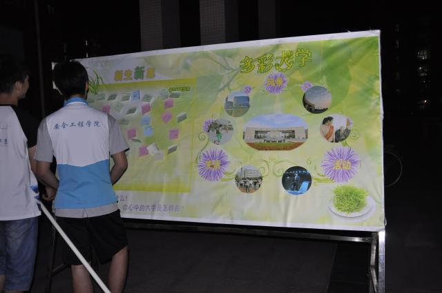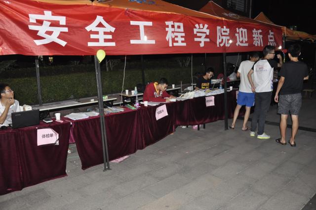 欢迎您”的红色绸带成为最醒目的标志,各学生会成员和班级同学轮流值班,各职员分工明确,会场秩序井然,给报道的新生提供了十分方便的入学手续办理平台;晚十二点,14级安全四班同学接手迎新工作,在介绍完各项工作的细节之后,他们各就各位,立刻投入到工作中去。深夜的疲倦完全抵挡不了学长学姐们的服务热情,在自己的岗位上静静地等待学弟学妹们的到来。