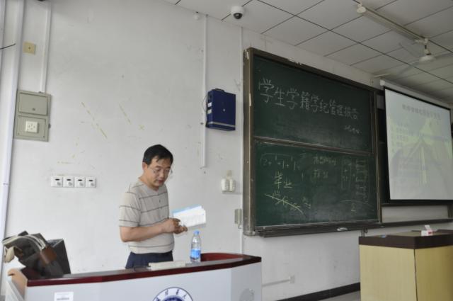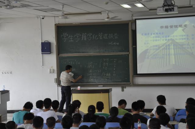 的学籍管理制度,并对未来的大学学习有一个基本的了解。张老师从新生入学,注册与考勤,学分制管理,转专业与转学, 缓考、补考及毕业前补考,提前毕业、延长学习年限,奖学规定,毕业、结业、肄业等方面讲解了学校的相关规定。张老师结合往年的案例,重点介绍了学分制管理 规定,并就同学们生活与学习中需要注意的事项做了进一步讲解。他希望同学们能够遵守学校的管理规定,认真对待学习,顺利完成学业,度过一个美好的大学时光。在张伯权老师的报告结束后,郑文奇老师又就新生军训问题给大家进行了讲解,解决了新生军训中即将面临的很多问题。