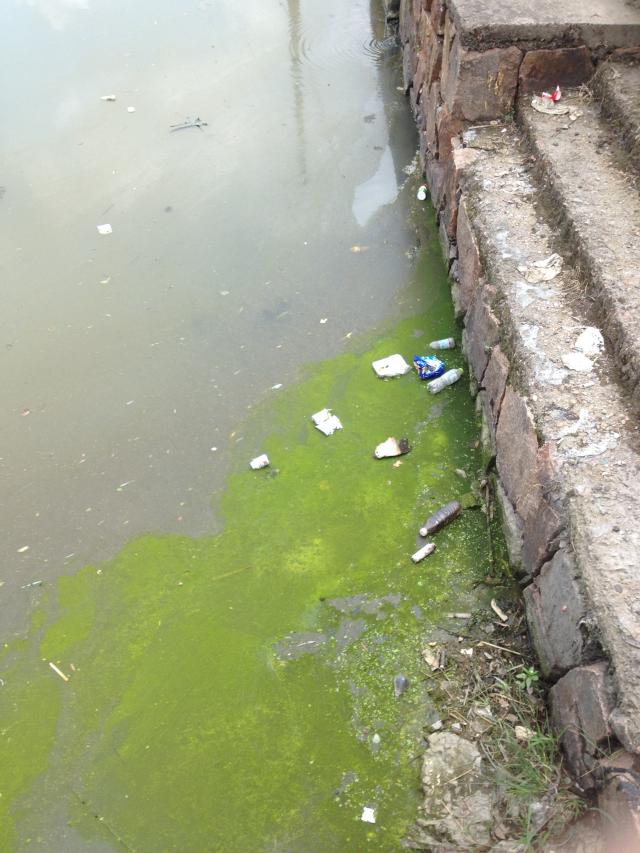 下午3时,实践团走访了部分村民,确定了本村最主要的环境问题是水污染。实践团成员根据村民的指引,并在村民地带领下来到被污染的池塘。实践团成员观察到池塘水体已变绿变臭,水面上还漂浮着许多垃圾,然而一旁还有洗着衣服的村民。村民反映,这里从来无人清理,也无人来负责。随后实践团成员在此进行了拍照取证和水体取样。