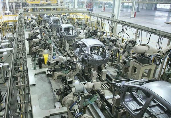 实践团成员们走进中国长安汽车集团的生产车间后,首先感受的便是震撼。偌大的车间内摆满了各种各样的大型设备,设备的运行紧致有序,机械化、自动化式的生产方式体现出生产线上的安全系数之高。