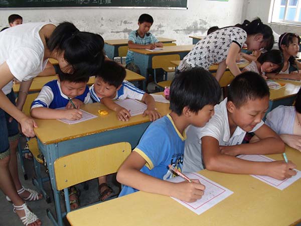 暑期实践团队——“141”展翅微笑志愿队,在白石台小学正式开展文化课程教育。