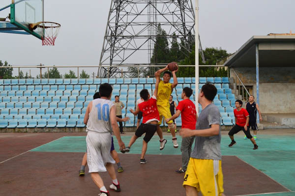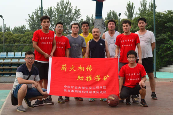 本硕博科技帮扶实践团与张集煤矿工作人员在矿区球场举办了一场友谊篮球赛。