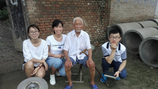 袁进叶老前辈今年已有90岁高龄,他于1944年入伍,1952年复员。袁老前辈因为家庭条件不好所以自愿选择入伍,参加的是汾河区的区中队,他去过多个地方,从北边到砀山,从砀山又回到华山,后来又到砀山。老前辈在部队时也参加训练,出操训练、跑步、蹲马步,既有文化课也有军事课。回忆起打仗时的心情,老前辈说道:“枪一响的时候害怕,不知道有多少敌人上来,一打起仗来那个枪就哗哗的叫,那哪还有害怕吗,一打起仗来就不怕了,越打得激烈越不害怕,在砀山一圈子都被敌人包围那也不害怕那就拼就完了能打就打,砀山那会我当机枪班长伤了一个班,十几个人。”后来袁老前辈到华山县保卫队里当副队长,后来因为胃病转业回家。采访结束,老前辈与志愿者亲切合影。