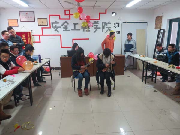 的绝技“消防安全小苹果”,安全学子们伴随着节奏摆动身体,尽显青春活力。而工商7班也为同学们带来了一场别开生面的尤克里里演奏。接着在热闹的氛围中,两班同学都进行了简单的自我介绍,使同学们对彼此有了初步的认识。接着同学们积极加入到两班精心准备的游戏中。考验配合的“一块五”、考验默契与见识的“你画我猜”、需要洞察力的“谁是间谍”,一系列乐趣无限的游戏激发了全场同学的热情。同学们的感情通过游戏也增进了不少。在游戏结束后,两班班长又切开了早已准备好的蛋糕,分发给同学们。同学们吃着甜甜的蛋糕,其乐融融。此次联谊会于下午5点左右结束。结束时,两班一起开心地进行合影,两班班长还相互交换了准备好的礼物,作为友谊的象征。