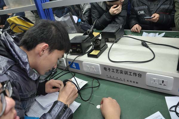 比赛开始之前,参赛选手们的热情十分高涨,大都早早的来到实验室,研究起了实验仪器。12月29日晚7点,比赛在信电学院A505焊接实验室准时开始。首先,由主持人宣布了本次比赛规则,并对参赛选手提出要保护实验仪器的要求。本次比赛共分为三天举办,获胜者即为用时最少焊接完成多用电表的队伍,最终结果会在比赛全部结束后公布。其次,由专业人士为参赛选手们讲解了焊接方法。经过两个多小时的激烈比拼,所有参赛选手们都完成了焊接多用电表,各队伍的成绩将在第二天公布出来。