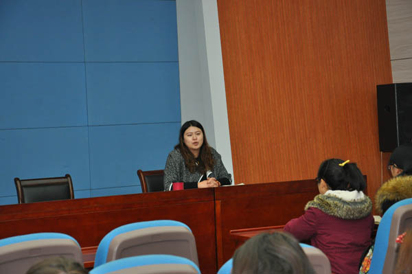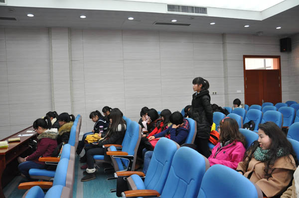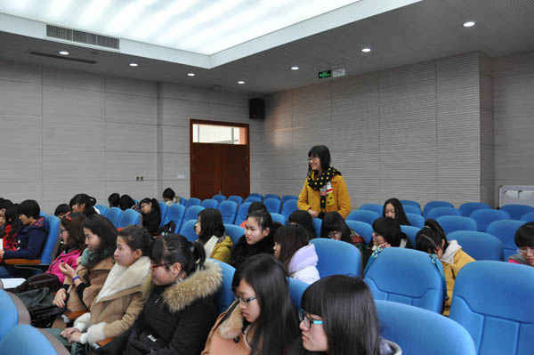 的女生们提前入座等待论坛开始。开始之后,孙老师首先说明了此次论坛的目的,她表示希望借此次机会促进13、14级女生的关系,也同时为大家的学习生活情感,以及今后将面对的工作问题提出一些意见和建议。接着,她对女生们的学习以及参加活动的情况提出了一些问题。孙老师希望女生们能更加努力地学习,更加积极地参加文体活动,展示出安全女生的风采。她列举一些已经毕业且成绩优异,学生工作也十分出色的女大学生的例子,鼓励大一大二女生们向她们学习。接下来,她让女生们对2014年做一个回顾,说说自己都收获到了什么。很多人表示结识了一群可爱的朋友,13级邬雨辰则说她遇到了一个日语老师,让她受益匪浅。接着,孙老师也谈到了感情问题,她希望女生们能够珍惜感情,不随便牵手,也不要轻易放手。最后,孙老师对女生们进行了语重心长的叮嘱,并再次鼓励包子漫画