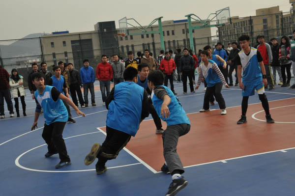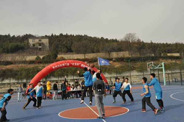 辅导员郑文琦老师开球,决赛正式开始。比赛刚一开始,双方手感火热,互不相让,接连进球。随后安全12―1班凭借身高优势,展开严密的防守,防守住对方的进攻,并在10号后卫石拿尔和1号前锋王鑫的带领下,不断向对方篮筐冲击,并接连打进。安全11―3,4联合队手感下降,中距离投篮屡次不进,比分不断被拉开,第一节结束,双方进入休息时间。此时技巧赛则在大一大二学生中展开,经过激烈的角逐,大一新生力克大二学长夺魁。第二节比赛,安全11―3,4联合队的1号后卫李钊开始利用自己的个人能力进行反扑,并取得效果,但是由于对手发动更猛烈的进攻,比分没有缩小。半场结束,双方战成30比13。