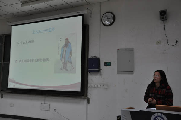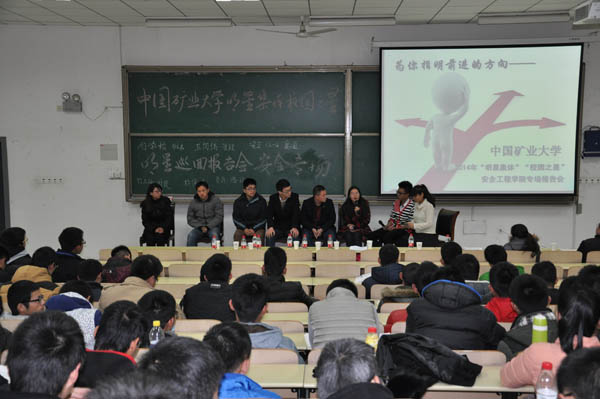 下午两点,报告会准时开始。报告会整体分为两个部分,第一部分是“明星展示”。首先,“星级宿舍”成员刘霞通过PPT向大家展示了自己和舍友们大学四年的点点滴滴,她告诫同学们在生活中要与舍友和谐相处,相互理解。“社会活动之星”白学松则向大家介绍了自己的学生工作经历,告诉同学们要“会说话,会办事,会学习”。“自强不息之星”卫向伟无疑是所有“校园之星”中最特殊的一位,他幼时因意外失去了右臂,却靠着一股永不服输的韧劲迎难而上,不仅将自己的生活打理得井井有条,在学习上更是名列前茅。最后,来自矿大“明星班集体”的学生代表鹿通向大家介绍了自己班级建设的宝贵经验,他精彩幽默的报告使现场气氛十分活跃,博得了同学们一阵又一阵热烈的掌声。第二部分是现场问答,“校园之星”们就同学们提出的“如何处理学习与学生工作的矛盾”,“如何恰当处理使宿舍成员的关系”,“如何调动班级同学参加集体活动的积极性”等诸多问题一一解答。