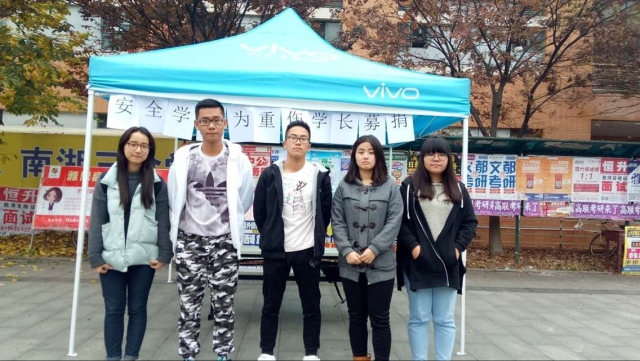 的志愿者们来到三食堂广场,布置好募捐的站点。接着志愿者们拿着宣传单向过往的行人们详细的介绍了这位同学的情况,并鼓励他们为朱同学献出一份爱心。行人们都表示愿意献出自己的一份爱心,积极进行捐款。本次捐款除了现金支付之外,还可以通过支付宝扫码捐款。捐款完毕后,他们写下了对这位同学的寄语,大家都希望学长加油,渡过难关。