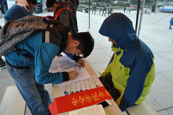 上午8点,活动正式开始。各学院的青年志愿者们热情主动地向来往的同学介绍公交卡办理的相关信息。他们还专门设立了公交卡办理咨询处和登记处两个服务台,为有办卡意向的同学们提供详细具体的咨询服务。活动刚刚开始就有不少同学聚集到服务台旁咨询信息,登记办卡。学院、姓名、身份证号、手机号,志愿者们全都面带微笑耐心地为一个个前来办卡的同学登记信息,提供服务。沿途经过的同学们无不被志愿者们的服热情务所感染,纷纷加入到登记办卡的行列之中,现场气氛十分火热。