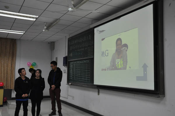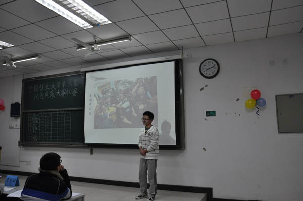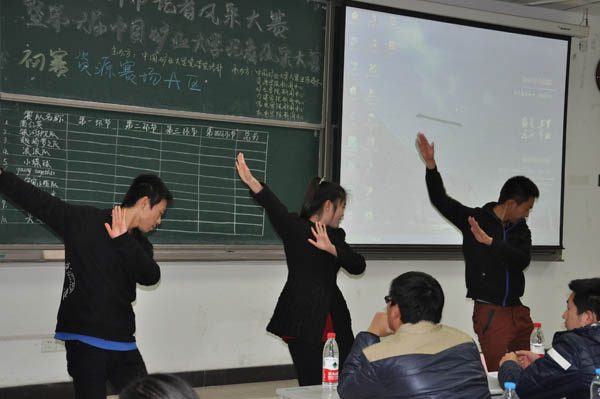 比赛分为五个环节:风采展示、忆古思今、新闻知识竞赛、扩展新闻、评委点评。第一环节胥振组作了简短的自我介绍,接着组员贺子玲表演了富有激情活力的肚皮舞来展现自己组的风采,令人眼前一亮,赢得了观众的一片喝彩。第三组一上场就表演了一段小苹果舞蹈,展现了安全包子漫画的青春活力,接着也进行了一段简短的介绍。第二环节忆古思今,选手要先在原地转15圈,然后抽题,每个题有10个古汉字,选手要在转完后写出这10个字的现代字。第二组景一参赛,并取得了6分不错成绩。其余两组也取得了不错的成绩。很快就进入了第三环节新闻知识竞答,共10分。修思琦组取得了7分的好成绩,但第一、二组发挥的却不太好,并没有取得太高的分数。第四环节是最有挑战性的,每题抽取一图,选手根据图的内容进行新闻的扩展,满分20分。第三组三个人配合协调,将新闻讲得具体、形象,取得了15分的好成绩。但其余两组发挥不是很好,得分并不高。最后评委针对总的情况进行了细致的总评。