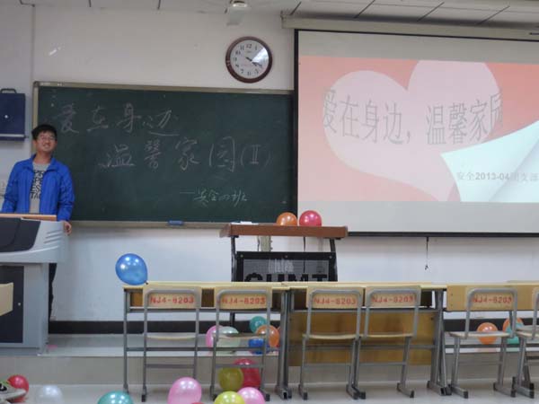 13-4班在教四B201召开“爱在身边,温馨家园”主题班会。安全13-4班班主任杨威和全体同学参加了此次温馨而又欢乐的活动。
