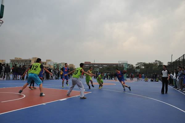 啦啦队加油助威。安全球员们打了开门红,瞬间提升了队员们胜利的信心。接着比赛继续进行,安全退后防守,却被资源反击得分。接着资源又接连进了几球,比分不断拉大,气氛逐渐变得紧张起来。安全组织了几次进攻,但都被资源挡了下来。经过几回合的对攻失利,教练当即叫了暂停,积极调整球队状态,应对接下来的比赛。