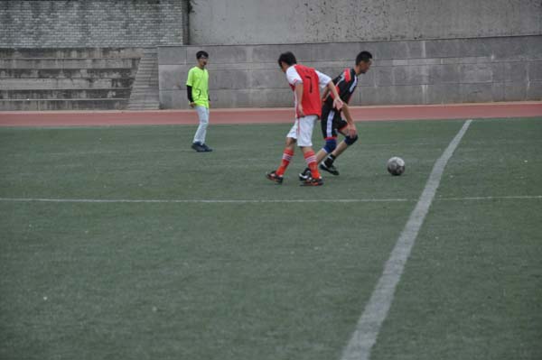 争得一球。整场比赛中双方队员可谓势均力敌,比赛过程异常激烈。双方队员在绿茵场上各显神通,为了各自学院的荣誉挥洒汗水。观众们的掌声、喝彩声接连不断响彻赛场。