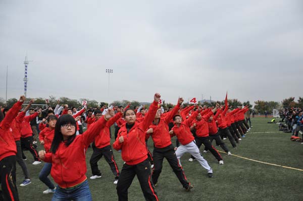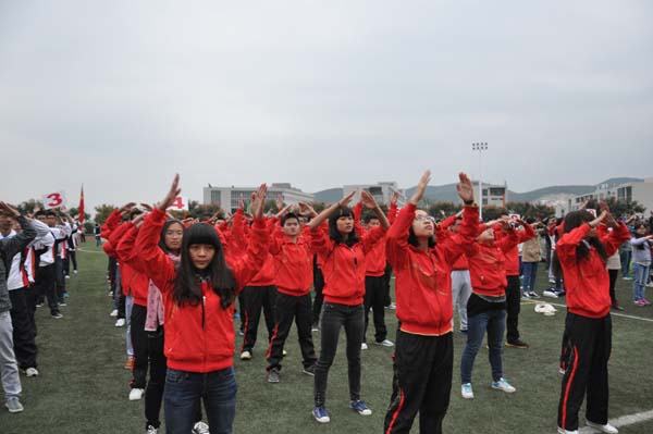 参练体操的同学在体育部部长的带领下,早早地来到了第一运动场,耐心的等待着上场。十月已近尾声,天气寒冷,在阴沉沉的操场上,各学院各就各位,为比赛做着充分准备。安全学子更是积极向上,表现突出。音乐响起,同学们便跟着舞动起来。尽管风很大,但却没有一个人叫累,而是以一种比平时更加认真的态度来对待这次彩排。为了比赛的成功,为了学院的荣誉,安全学子一个个都精神饱满,少了平时的浮躁,多了一分严肃。彩排结束后,体育部副部长张凯表示彩排时同学们队列整齐,动作也很到位,比平时好很多;但他也只出了一些不足,比如同学们在进场时的表现就不尽人意,齐步走的快慢参差不齐,他随后告诉新生们会在今后加强训练,争取能够取得更满意的效果。