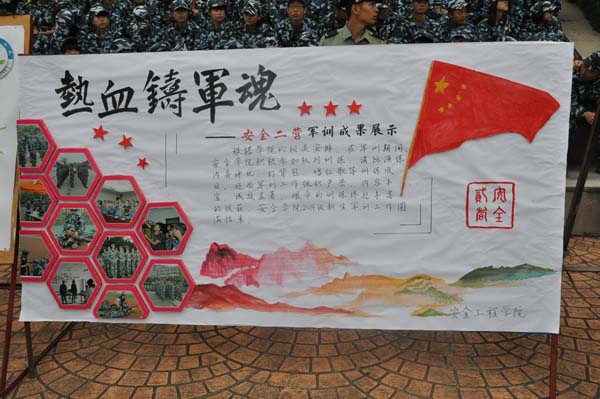 荣获“2014级军事技能训练单项优胜奖”称号,14级辅导员孙婷老师被评为“军训优秀辅导员”,安全14-1班被评为“军训先进班级”,郑传宝等17名新生被评为军训先进个人。