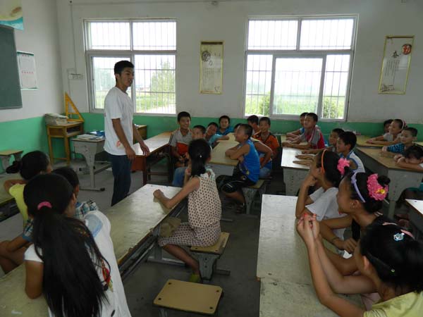 为了弘扬传统文化,促进国学的有序传承。“爱心阳光之队”暑假支教团特别开设了国学课程。该课程由支教团的国学爱好者李小强同学担任主讲。8月4日上午,国学课正式开讲。