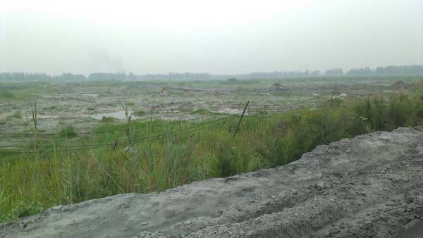 了解到煤矿对环境的巨大影响,7月17日上午,“寻找蓝天”暑期社会实践团派出一支小分队进行实地考察。9点整,小分队到达了因煤层开采而导致的塌陷区――铜山县柳新镇李庄村。
