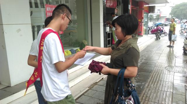 在此次活动中,队员们分成三组行动进行问卷调查。此次问卷调查不限年龄以及职业,其目的主要是了解徐州市及周边地区的主要环境问题以及群众的环境保护意识。第一组同学们向市区的环保人员进行了咨询,从他们口中分别了解到了市区的污染源、环保人员的巨大工作量以及徐州市近几年的环境变化。第二组同学们负责向市民发放问卷调查,在市民们填写问卷时也与他们进行了交流,深入了解了市民们对于环境问题的看法。第三组同学们在开展问卷调查活动时,也自愿地对市区的一些垃圾进行了清理,尽自己所能去完成美化城市的目标。虽然整个活动历经艰辛,但是最终每个小组都顺利完成了任务,并将完成好的问卷调查交到队长武文杰手中并由其进行汇总。