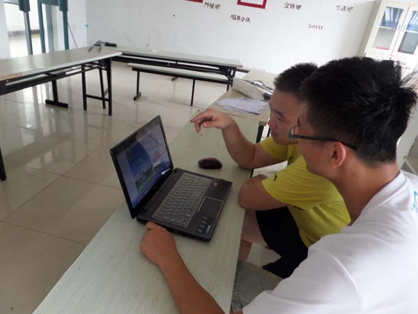 经过了前几天的调查总结以及整理规划,“寻找蓝天”实践团将目光停留在了文昌校区,希望能够把文昌校区的居民小区环保项目做好,并以此为典例,将环保活动推广到其他小区。为此,宣传工作一定要做到位。经过实践团成员的认真讨论之后,同学们一致决定要制作宣传海报,通过张贴海报的方式来提高宣传力度,但此举面临的困难是团队成员并无一人会海报的制作。为了接下来活动的顺利进行,团队负责人董齐齐同学决定自己学习海报的制作,他联系了一位海报制作高手,咨询了一些海报制作的经验和学习制作海报的网站。经过了一上午的辛勤学习,董齐齐同学已掌握了抠图等制作海报的基本技术。但由于技术的限制,实践团只能从网上下载版式较好的海报模板作为参考,然后由董齐齐挑选一张最为满意的海报,再运用他已学会的简单技术将海报变成团队所需要的样子。海报制作好的时候以临近傍晚,虽然困难重重,但艰辛的付出总会有回报,而汗水的光芒折射出的正是对此次活动认真负责的精神。
