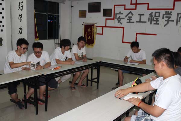 晚上7点整,“七月书海――我的中国梦”暑期社会实践团队的队员拿着自己白天做的调查问卷来到梅三五楼会议室,首先A、B两队成员对调查得来的数据进行了耐心的整理,整理完毕后,由A、B两队队长汇报整理结果,紧接着所有成员对整理的结果进行了热烈的讨论,大家一致认为,大学生对于读书的重要性的认识及他们读书的数量要远远高于村民。然后,各个队员又陈述了自己在实践过程中的感想与感悟。会上,乡镇考察组组长崔捷表达了自己对桥上村民很少有人读书这个现况的惊讶,他说,自己从没有想过,有些村民竟然一辈子也没读过书,他们甚至连字都不会写。摄像组组长哈森则发言说:“有些村民不识字,所以就放弃了读书的念头,他们的想法是不读书照样能挣大钱”。会议的最后由队长杜杨做总结发言,队长杜杨首先对大家今天的社会实践活动的表现给予了肯定与表扬,他说:“现如今的公民都应该具有多读书,读好书的优良习惯,很多村民没读过书,不认识字,去帮助他们,对于我们而言就是应该去做的事,大家要积极努力,认真做好以后的实践工作,发挥我们大学生的榜样作用,发动全民阅读,让大家都养成爱读书的好习惯。”