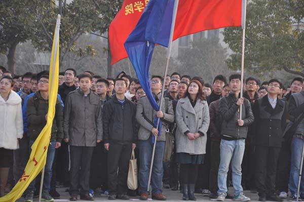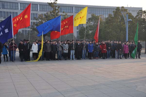 在国旗广场举行了2013青年志愿服务者主题活动月启动仪式暨‘爱国主义主题教育’升旗仪式,校党委副书记曹德欣,校团委书记李江涛,校党委宣传部副部长龚成,校团委副书记谢发国以及各学院党委副书记、团委书记和辅导员出席了本次活动。