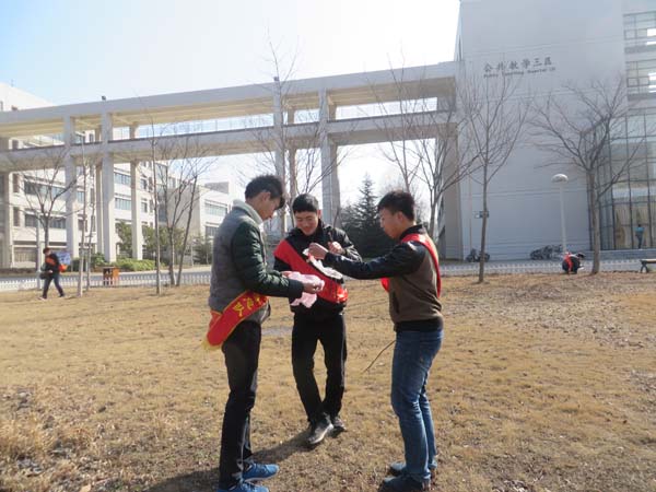 服务分队B组的全体成员在图书馆前集合,在组长靳营得的带领下,陈松,张凯,杜杨,吴文庆,祁成成一行六人积极地参与到学校组织的镜湖环境维护活动中。