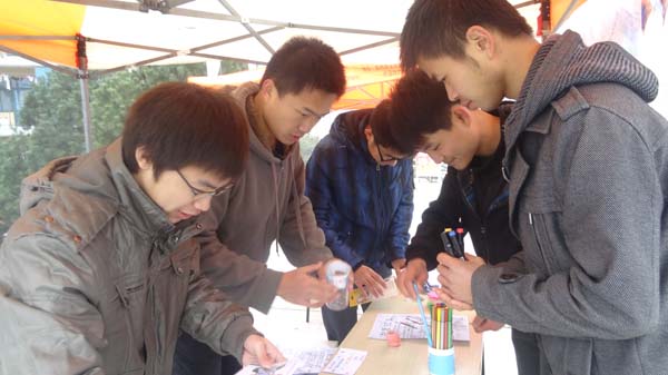 党员工作站送出的精美礼品。新颖独特的活动形式以及丰厚的奖品吸引了大批的学生前来参与。参与的学生通过各种方式表达自己的见解。有的学生当场构思一二九运动的活动标语,有的学生通过一段话表达自己对爱国主义学生的缅怀与敬佩,而拥有一定绘画功底的学生则用漫画的形式来纪念一二九运动。来往的学生络绎不绝,场面异常热闹。临近活动尾声时,包子漫画