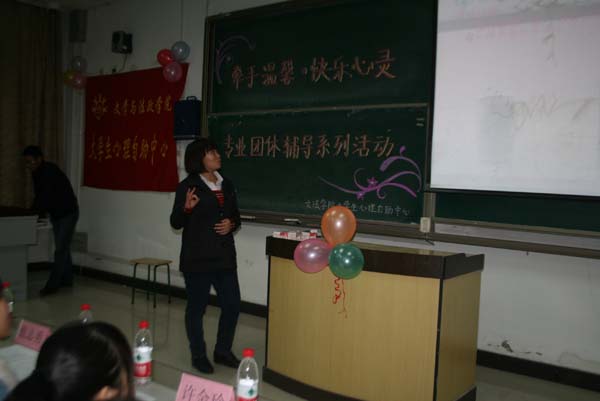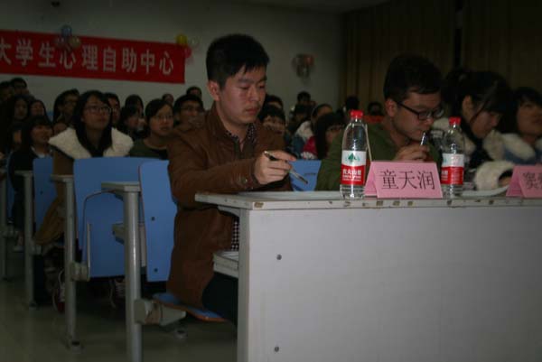 的设计赢得了台下的阵阵掌声。接着,电力工程学院等学院的心理自助中心成员也陆续展示了他们对其学院团辅活动的构想与设计,同样丰富多彩,也充满了学院的特色。8:45,共计八个学院展示完毕,由评委点评各学院的设计,比赛成绩择日公布。9时许,团体辅导系列活动正式结束。