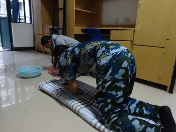 军训期间内务检查评比的重要项目,它体现了军人的果敢和正气,也让同学们在叠军被地过程中,学会了吃苦耐劳,学会了细心谨慎。宿舍里还有一幕外人看来一定很奇怪,新生们将窗帘叠成8叠,再用夹板一遍一遍地夹,为的就是让窗帘呈现出层次感。