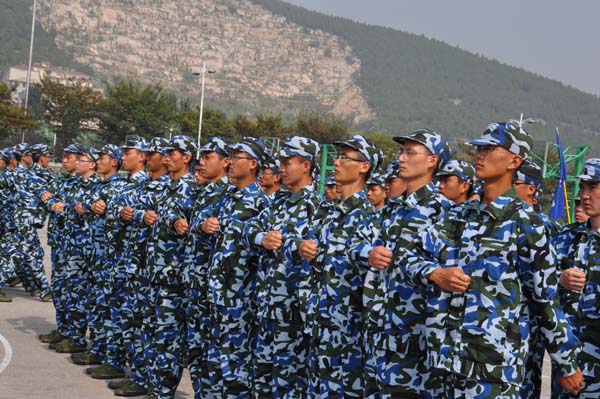只有严格的训练才能得到优秀的队伍,只有不怕艰难与困苦的士兵才能成为好士兵。相信烈日下的训练一定能帮助大家历练自己,在今后的学习和生活中战胜困难,战胜自己。