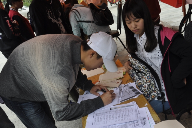 心理自助中心部长刘鑫的组织带领下,现场工作人员撑起帐篷,摆好桌椅,准备好了信纸、信封和报名表。四名部员在帐篷内进行寄信人名单的填写、信封的发放及编号,其他部员向过往的同学老师们宣传讲解此次活动及意义,并带领他们领取信封信纸,填写个人信息,完成了对自己的寄语。活动将持续至20日,期间每日中午均有心理自助中心的同学在一、二、三食堂等待。
